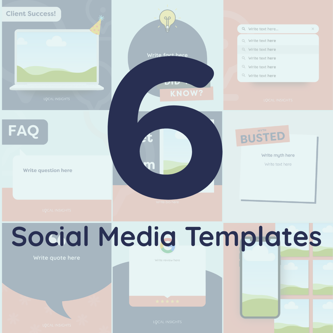A set of 6 professionally designed social media templates, ideal for businesses looking to quickly enhance their social media presence. Compatible with Canva, they are perfect for creating consistent and visually appealing posts with minimal effort.